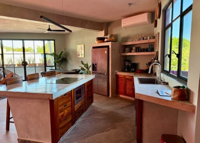 Amplios espacios abiertos, cocina moderna. Dos habitaciones (una con cama matrimonial y otra con cama king), dos baños y medio, terraza en la azotea con jacuzzi y vistas espectaculares a las montañas.